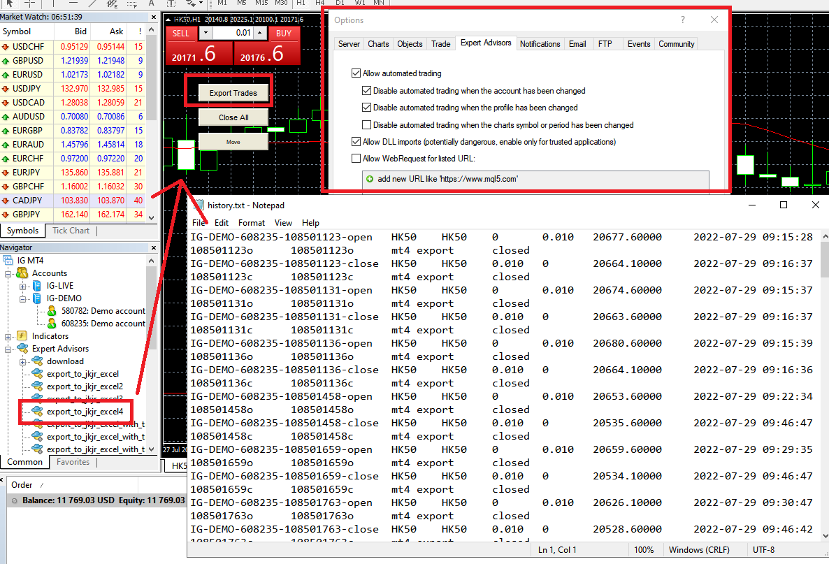 how to get trade log from SP Trader / IB / MT4